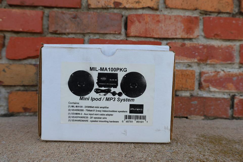 A variety of sound bars, speakers, and other audio equipment such as speakers shown above and the Bazooka party bar.